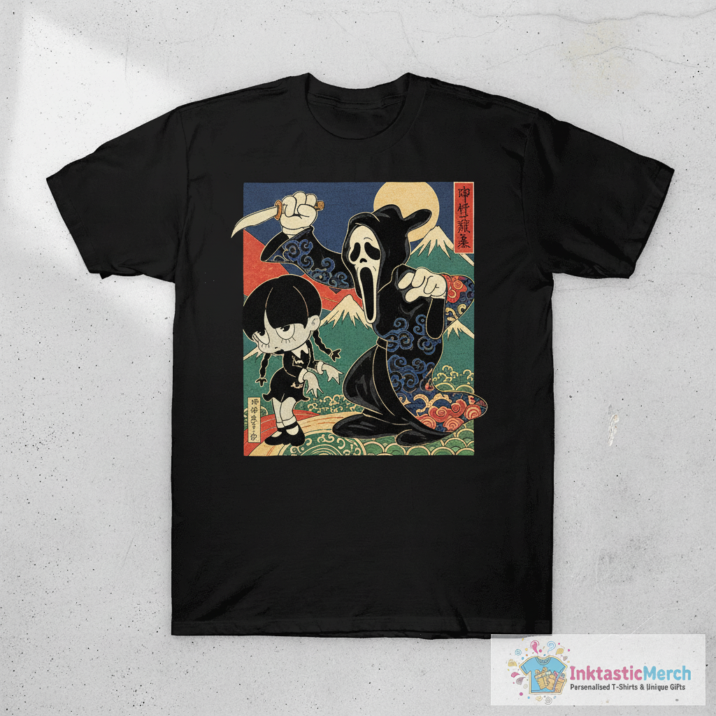 This T-shirt is ideal for movie buffs, fans of the Scream franchise, and lovers of the Cuphead game and its retro animation aesthetic. It’s also a fantastic choice for anyone who appreciates unique, artistic graphic tees. Whether you’re attending a comic con, going to a Halloween party, or just want to add some personality to your casual wardrobe, this shirt fits the bill. It makes a thoughtful and fun gift for friends and family who share your passions.