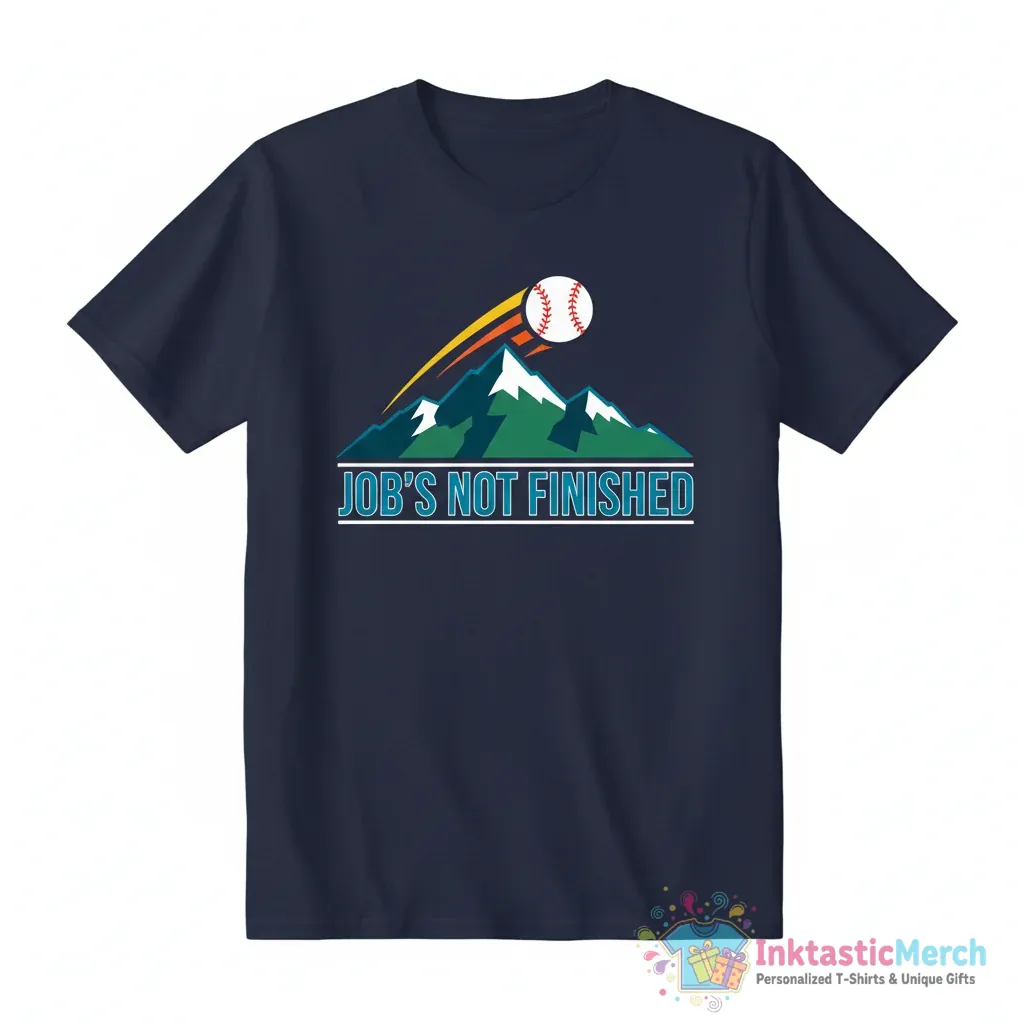 Show your unwavering support for the Seattle Mariners with the “Job’s Not Finished” shirt from InktasticMerch. Crafted from incredibly soft, premium quality fabric, this tee offers ultimate comfort and a classic unisex fit, making it perfect for game days or everyday wear. Its bold design is a stylish statement of loyalty and the team’s never-give-up attitude.