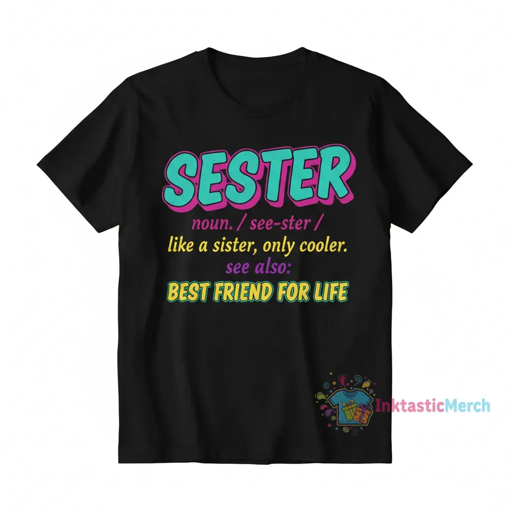Celebrate the unbreakable bond of chosen family with the Seester Definition shirt from InktasticMerch. Crafted from luxuriously soft, premium fabric, this tee offers unparalleled comfort for your everyday adventures, embodying the idea of a sister who’s ‘only cooler’.