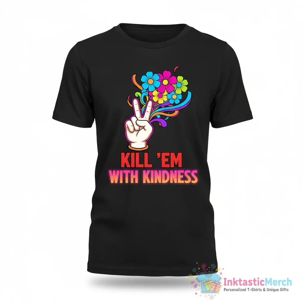Get ready to feel amazing in this incredibly soft tee. We’ve chosen a premium fabric blend that feels great against your skin, perfect for all-day wear. The “Kill Em With Kindness” design is printed with high-quality inks that last, so your message stays vibrant wash after wash. Its relaxed, unisex fit means it looks good on everyone, offering a comfortable and stylish silhouette. This shirt embodies a positive and confident vibe, making it a perfect addition to your casual wardrobe.