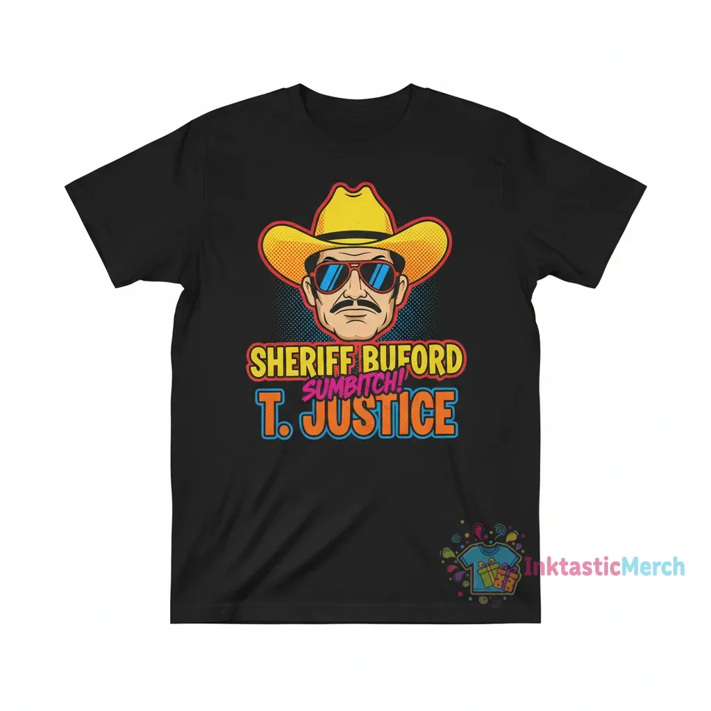 Upgrade your style with the Sheriff Buford T. Justice “Sumbitch” T-Shirt from InktasticMerch, engineered for maximum comfort with premium, pre-shrunk cotton that guarantees a perfect fit wash after wash. This statement piece is built to withstand the test of time, featuring vibrant, eco-friendly inks that resist fading and cracking, ensuring you make a bold impression.