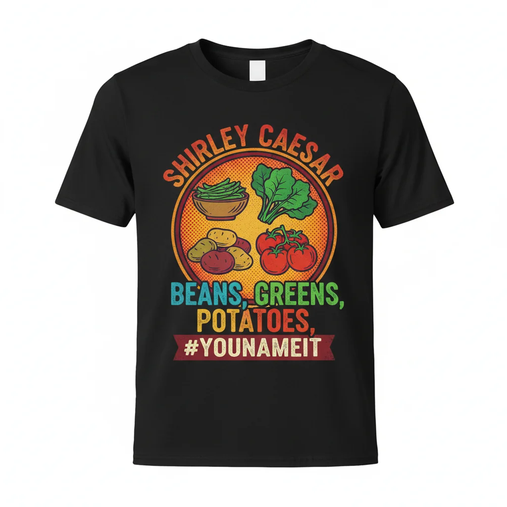 Celebrate the iconic and beloved viral sensation with the “Shirley Caesar Beans Greens Potatoes Tomatoes Song” Essential T-Shirt, a must-have for fans of gospel music, viral memes, and Thanksgiving traditions. This premium graphic tee captures the spirit of Shirley Caesar’s timeless holiday reminder, making it a perfect conversation starter and a unique addition to any casual wardrobe. Ideal for everyday wear, holiday gatherings, or as a fun gift, this shirt allows you to proudly display your appreciation for a cultural phenomenon that brings joy and laughter to many.