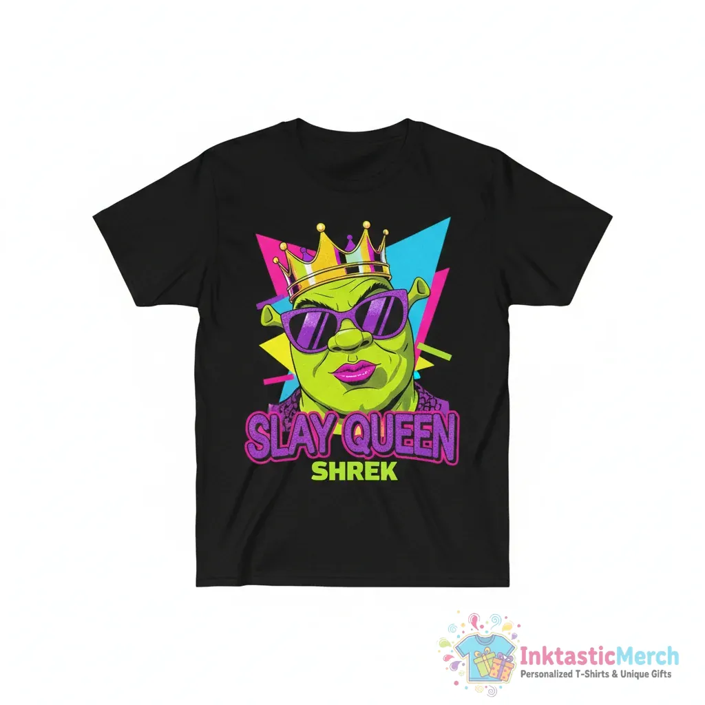 Unleash your inner diva with the Shrek Sassy Queen T-Shirt from InktasticMerch. Made with super soft, high-quality fabric, this tee celebrates the iconic ‘Slay Queen’ meme from Shrek, offering both comfort and a touch of humor to your everyday style. Experience the perfect blend of fun and charisma with this unique, breathable, and durable t-shirt.