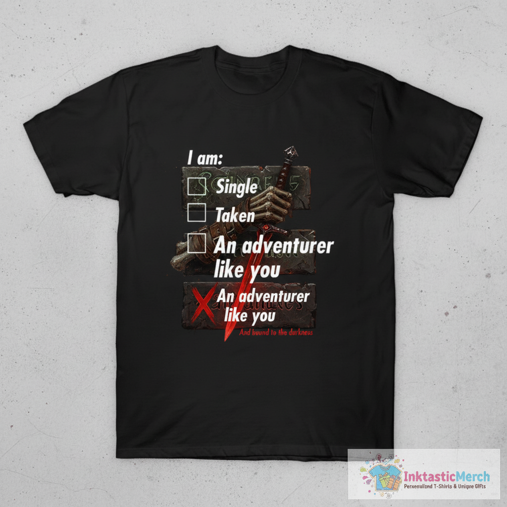 Showcase your adventurous spirit with the Single Taken Adventurer T-Shirt, crafted for comfort and style from super soft, 100% premium cotton fabric with durable, high-quality construction. This statement tee, perfect for gamers and adventurers alike, lets you express your passion for exploration in a relaxed, everyday way. Discover more great designs at inktasticmerch.com.