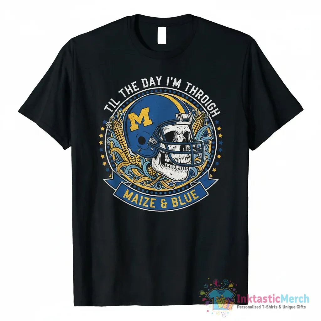 Show your unwavering spirit with the Skull Maize and Blue Til The Day I’m Through Michigan Wolverines shirt from InktasticMerch. This premium tee features a bold skull design intertwined with the iconic maize and blue, capturing the fierce loyalty and passionate energy of every true fan. Crafted from high-quality, ultra-soft fabric with a flattering unisex fit, this shirt offers exceptional comfort and durability for all your Michigan pride celebrations.