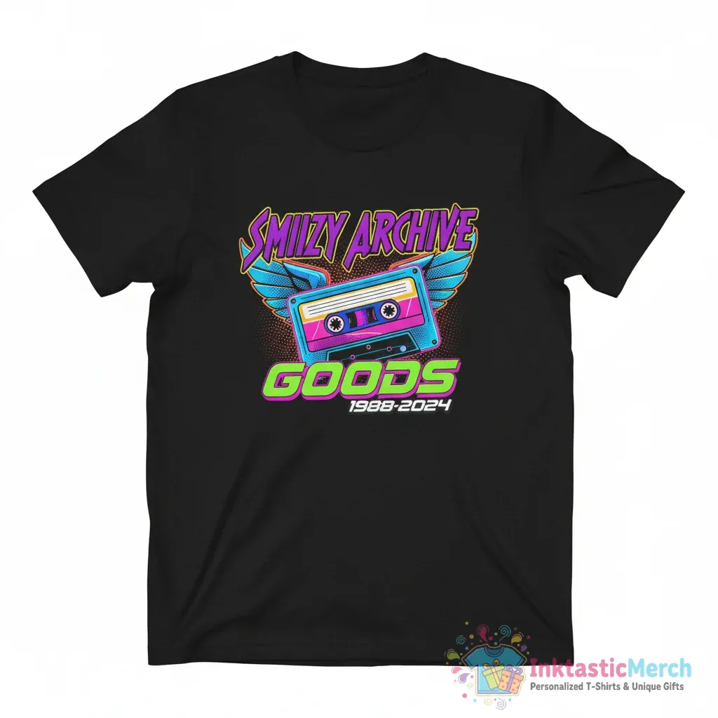 Introducing the Smiizy archive goods logo shirt, a premium quality tee crafted for both comfort and durability, perfect for those who appreciate unique and stylish apparel. Make a statement with this eye-catching design and experience the difference quality makes, brought to you by InktasticMerch.