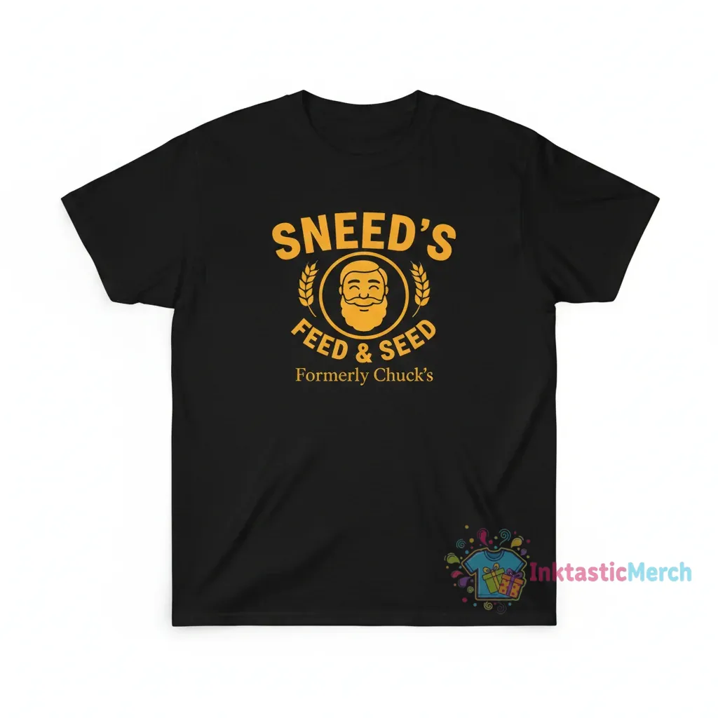Embrace your sense of humor and style with the Sneed’s Feed and Seed Formerly Chuck’s T-Shirt, a unique statement piece crafted for comfort and lasting quality. Made from ultra-soft, breathable fabric, this tee ensures a premium feel and a vibrant print that stands the test of time. Discover more unique apparel at inktasticmerch.com.