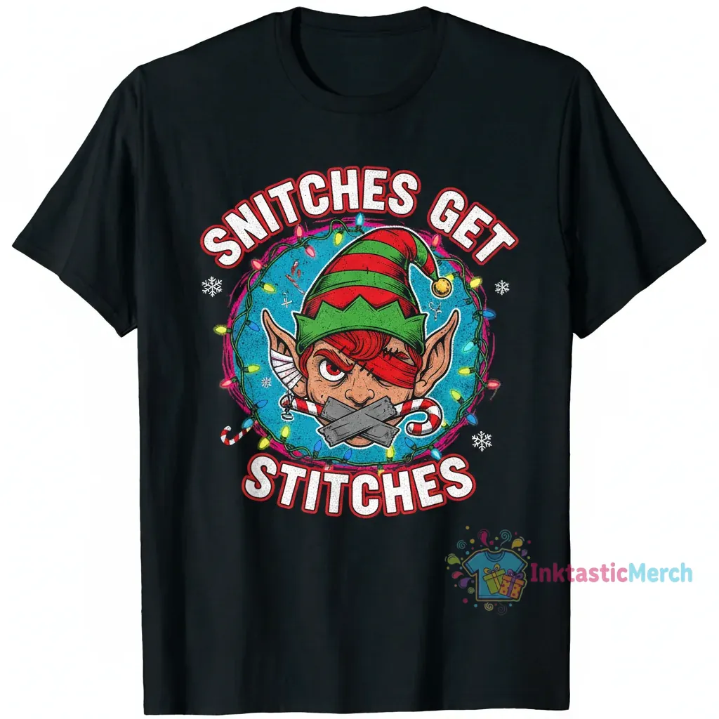 Redefining festive with a dose of pure cool, the “Snitches Get Stitches” Elf sweater from InktasticMerch merges classic holiday vibes with modern streetwear. Crafted from premium, ultra-soft fabric, this sweater offers a luxurious touch and exceptional comfort, making it the perfect statement piece for effortless style.