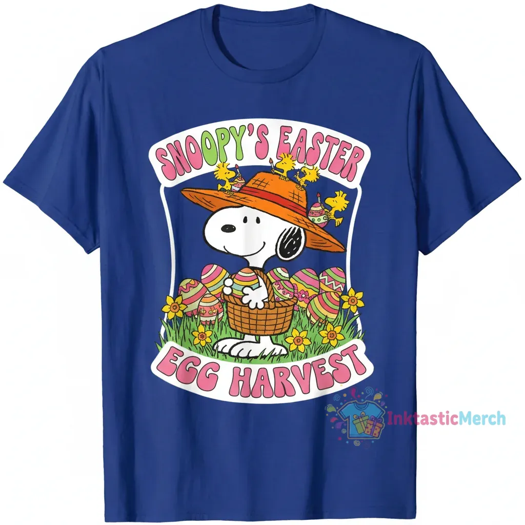 Celebrate springtime joy with the Snoopy Easter Egg Harvest T-Shirt, a premium graphic tee crafted for comfort and style from 100% ring-spun cotton. This unique shirt features beloved Snoopy amidst a festive Easter egg harvest, making it a perfect addition to your seasonal wardrobe or a thoughtful gift for any Peanuts fan, discover more at inktasticmerch.com.