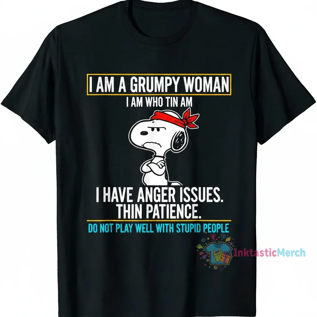 Embrace your truth with the Snoopy Grumpy Woman shirt, designed for the woman who knows herself and owns her vibe. Crafted from premium, ultra-soft cotton, this tee offers unmatched comfort and a lightweight feel perfect for all-day wear, embodying an ethos of unapologetic attitude. Discover more statement wear and other iconic looks at inktasticmerch.com.