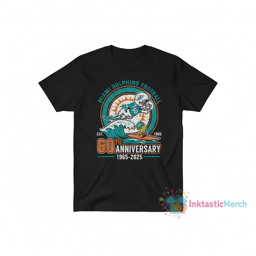 Celebrate the Snoopy Peanuts Miami Dolphins 60th Anniversary with this wearable piece of history, designed for those who appreciate nostalgic charm and vibrant energy. Crafted from luxuriously soft fabric, this tee ensures all-day comfort and features expertly printed original artwork, embodying the unwavering team spirit of the legendary Miami Dolphins and beloved Peanuts characters. Explore more premium apparel from InktasticMerch.