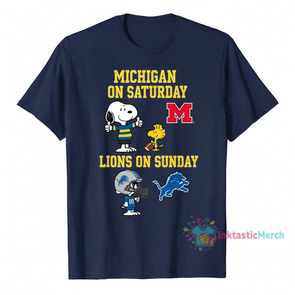 Show your team spirit with the ultimate Snoopy Peanuts Michigan on Saturday Lions on Sunday shirt! Perfect for any fan who loves both college football and NFL Sundays, this tee celebrates your weekend game day traditions. Featuring beloved Peanuts characters, it’s a fun and stylish way to rep your favorite teams. Get ready for Saturdays and Sundays in comfort and style!