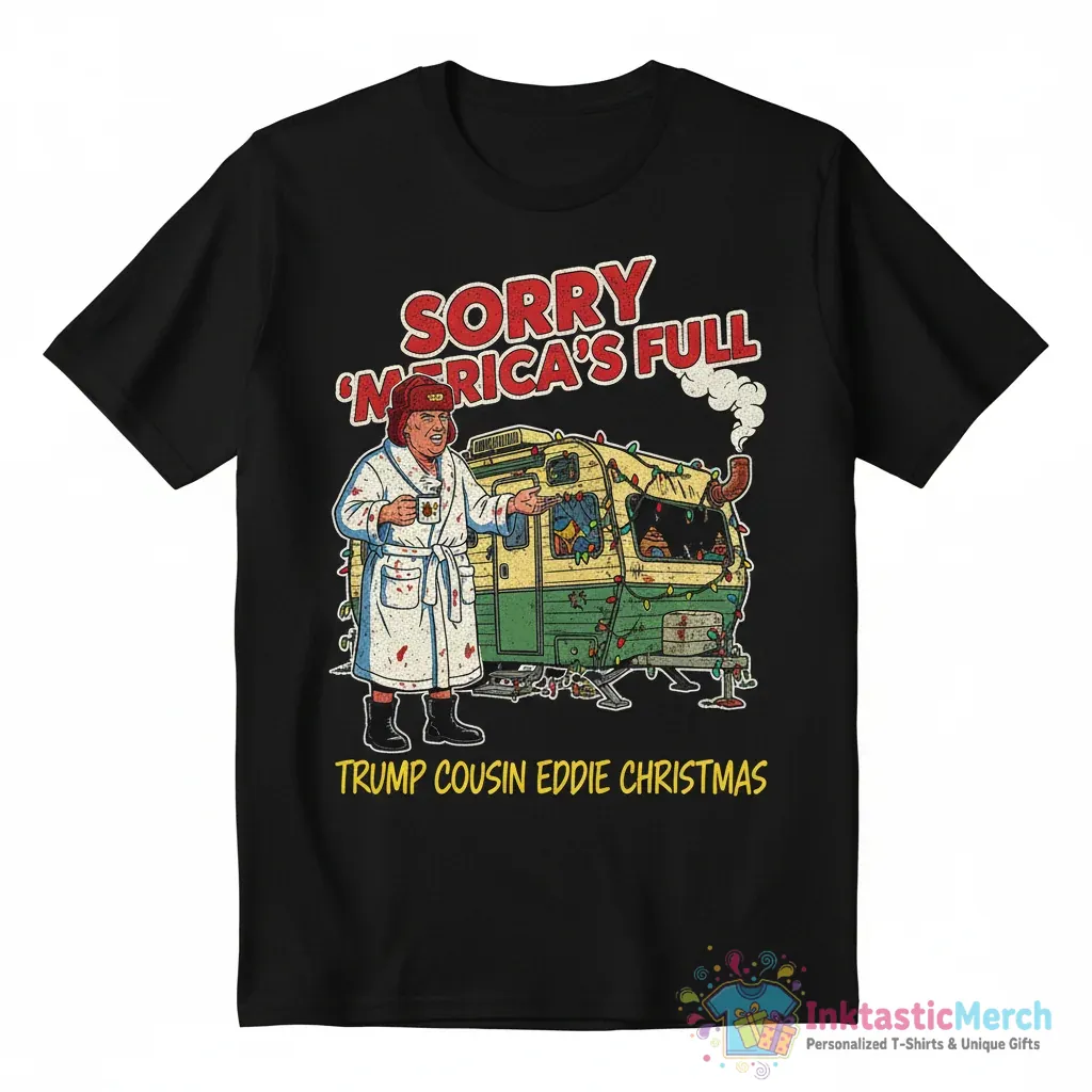 Show off your unique holiday spirit with the Sorry ‘Merica’s Full Donald Trump Cousin Eddie Christmas T-shirt from InktasticMerch. Crafted from incredibly soft, high-quality fabric, this tee offers ultimate comfort and a vibrant print built to last, ensuring your festive spirit stays bright wash after wash.