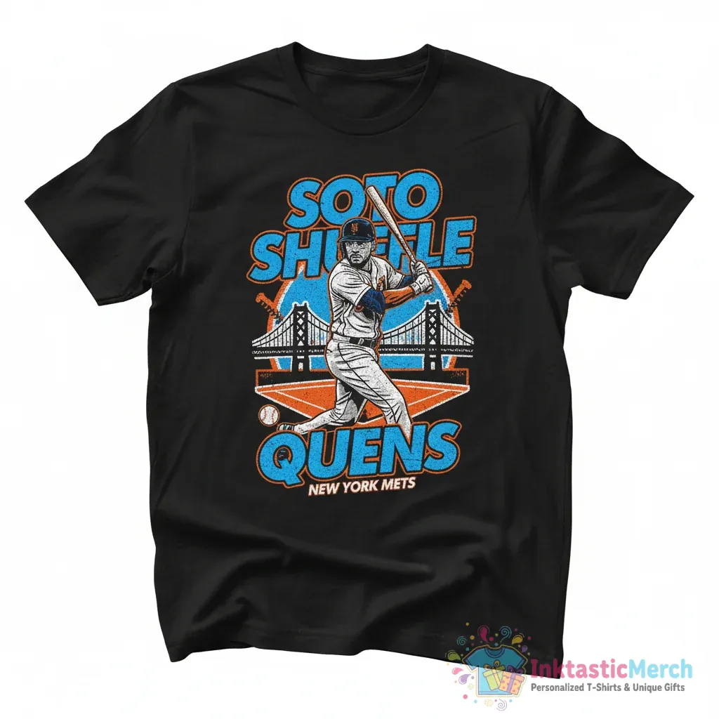 Show your support for Juan Soto and the New York Mets with this premium quality Soto Shuffle T-shirt from InktasticMerch. Crafted from ultra-soft, durable fabric, this tee offers maximum comfort and lasting style, making it a must-have for any dedicated fan looking to celebrate Soto’s arrival in Queens.