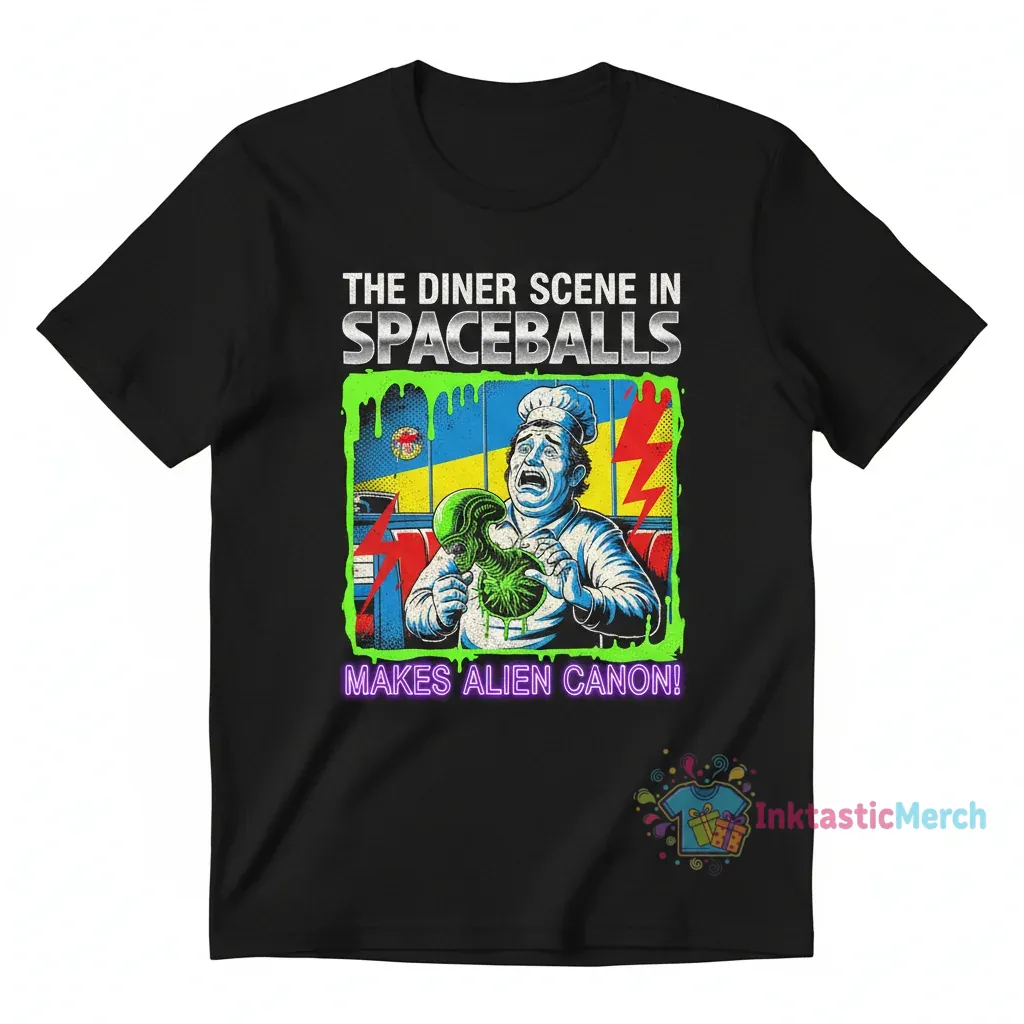 Celebrate the brilliance of Spaceballs and its legendary connection to the Alien franchise with our exclusive “Alien Canon Diner Scene” t-shirt from InktasticMerch. Crafted from premium, pre-shrunk cotton for enduring comfort and featuring vibrant, eco-friendly inks that resist fading, this shirt is built for durability and style, making it your go-to piece for any occasion.