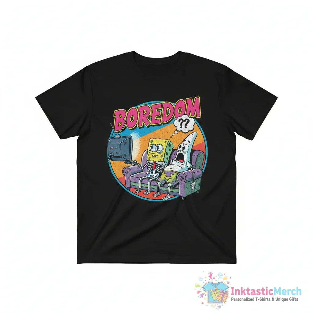 Show off your unique style with the SpongeBob SquarePants And Patrick Bored Skeletons Essential T-Shirt from InktasticMerch. Made from premium, ultra-soft fabric, this tee offers exceptional comfort for everyday wear, while the high-quality print ensures the vibrant artwork lasts wash after wash. It’s the perfect blend of nostalgic fun and modern comfort, embodying a laid-back, fun-loving vibe that’s effortlessly stylish.