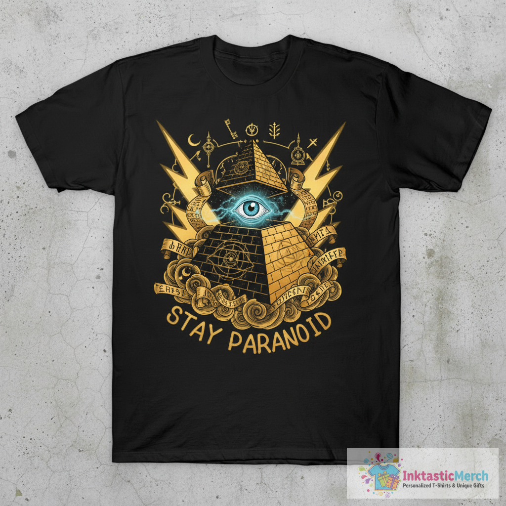 Discover the mystique of the unknown with our Stay Paranoid T-Shirt, designed for those who question the world around them. This unique piece intertwines fashion with a hint of curiosity, perfect for individuals who love exploring conspiracies and secretive societies. The striking design is both eye-catching and conversation-starting, allowing you to showcase your personality effortlessly.