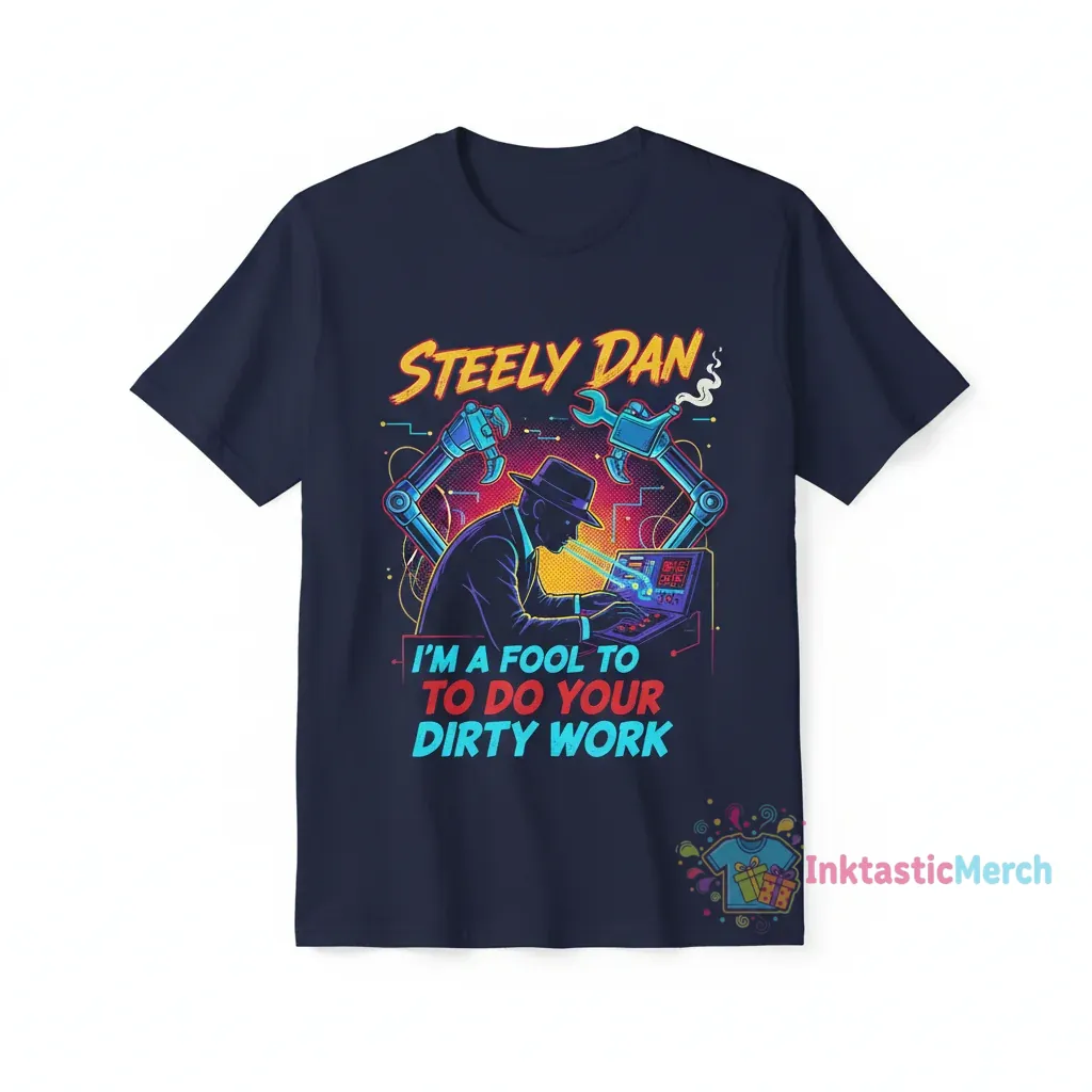 Embrace your love for Steely Dan with this high-quality graphic t-shirt, featuring the memorable lyric “I’m A Fool To Do Your Dirty Work.” Crafted from 100% ring-spun cotton, this tee offers exceptional softness and durability for a comfortable, true-to-size retail fit that looks great on everyone. Discover more fan apparel and statement pieces at inktasticmerch.com.