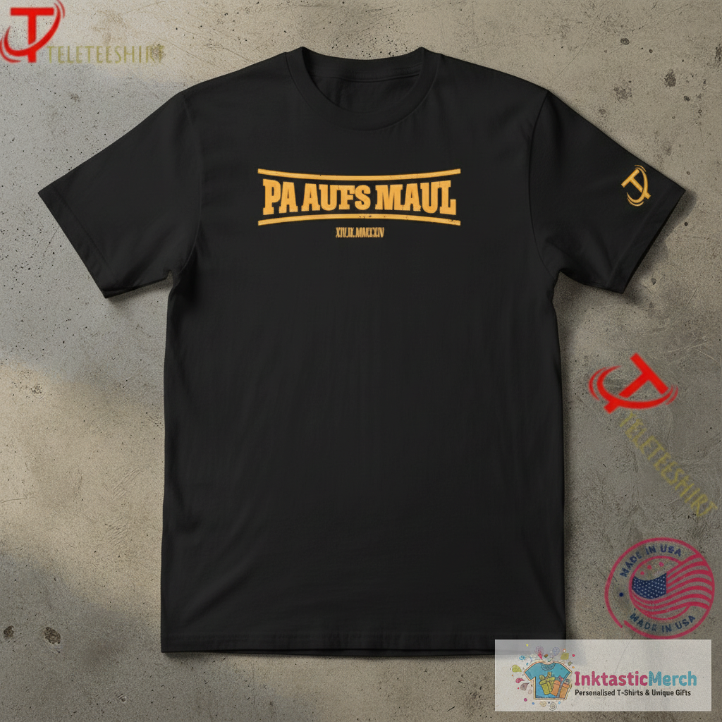 Make a statement with the Stefan Raab Wearing Pa Aufs Maul 2024 T-Shirt from InktasticMerch. Crafted from an ultra-soft cotton blend, this tee offers supreme comfort and durability for everyday wear. Its unique graphic print and classic unisex fit make it a versatile addition to any casual wardrobe, perfect for fans of Stefan Raab and pop culture.