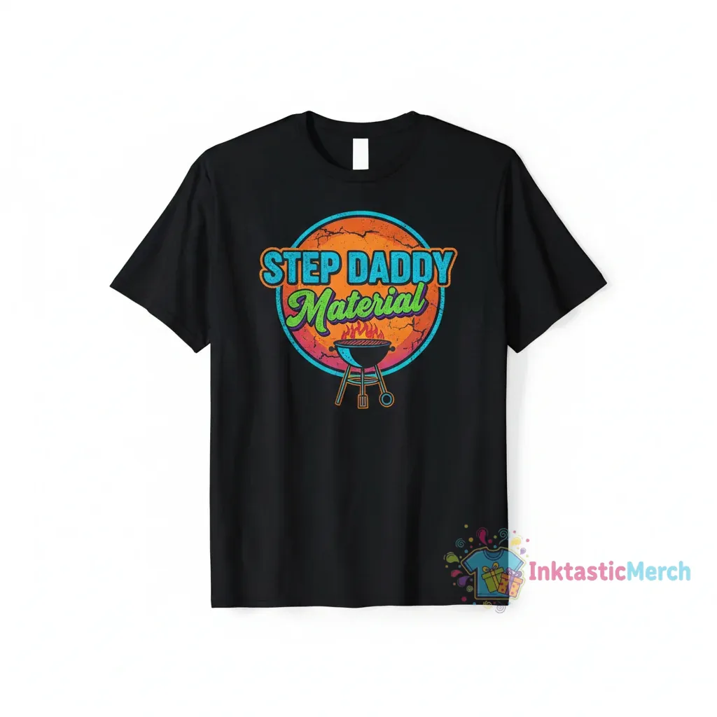 - Features a humorous “Step Daddy Material” sarcastic quote design