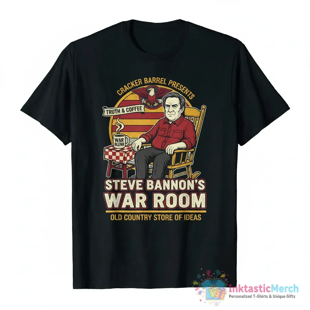 Bring your style to life with the Steve Bannon’s War Room X Cracker Barrel logo shirt today!