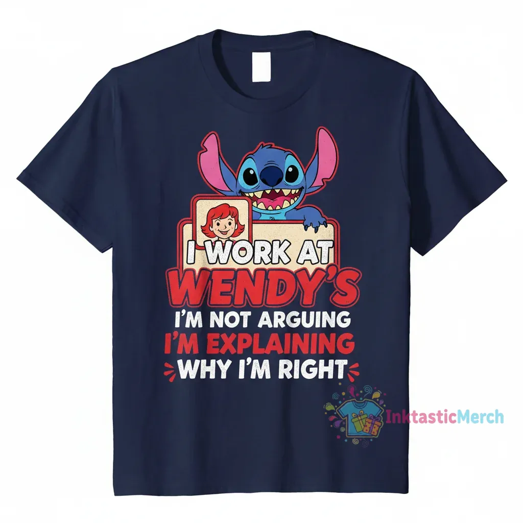 Bring your style to life with the Stitch “I Work at Wendy’s, I’m Not Arguing, I’m Explaining Why I’m Right” shirt today!