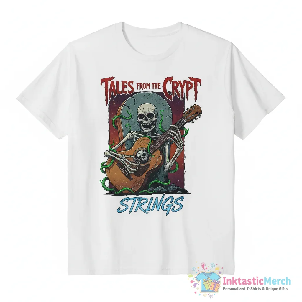 Unleash your inner crypt keeper with the Strings Tales from the Crypt shirt from InktasticMerch. This premium tee features unique “Strings” artwork inspired by the classic horror anthology, offering a spooky yet stylish vibe made with top-notch, ultra-soft fabric for exceptional comfort and durability. It’s the ideal way to express your personal style with a touch of macabre charm, perfect for horror movie buffs and fans of eerie aesthetics.