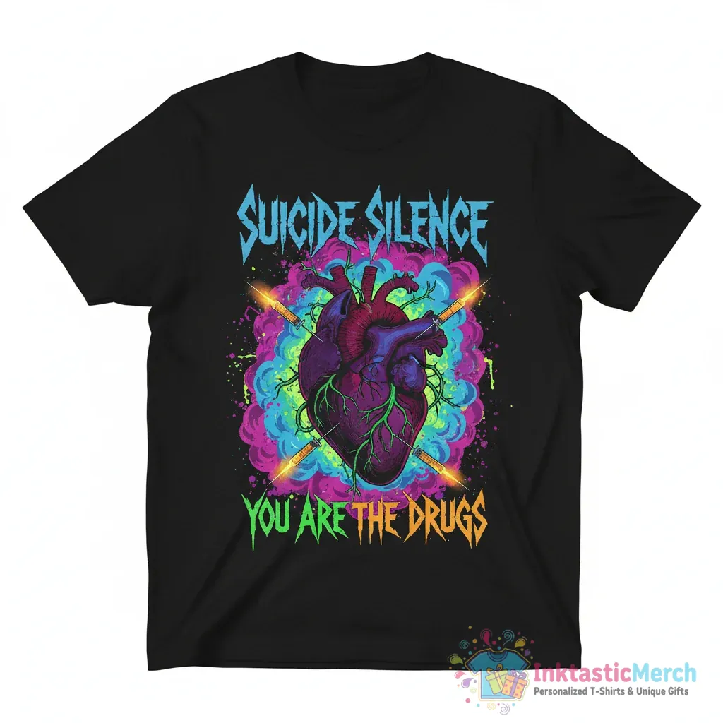 Make a statement with the Suicide Silence You Are The Drugs Shirt. This premium tee is perfect for fans who want to show their love for the band with a unique and eye-catching design. It’s more than just a t-shirt; it’s a way to express your musical taste and personal style. Crafted for both comfort and durability, this shirt is designed to be a go-to piece in your wardrobe, whether you’re heading to a concert or just hanging out.