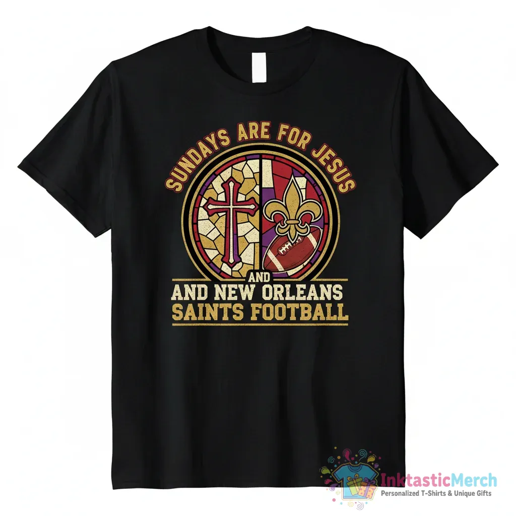 Show your faith and your team spirit with the Sundays Are For Jesus And New Orleans Saints Football shirt. This tee is crafted from super-soft fabric for ultimate comfort and durability, making it a go-to choice for game days and everyday wear. Discover more quality apparel and unique designs at inktasticmerch.com.