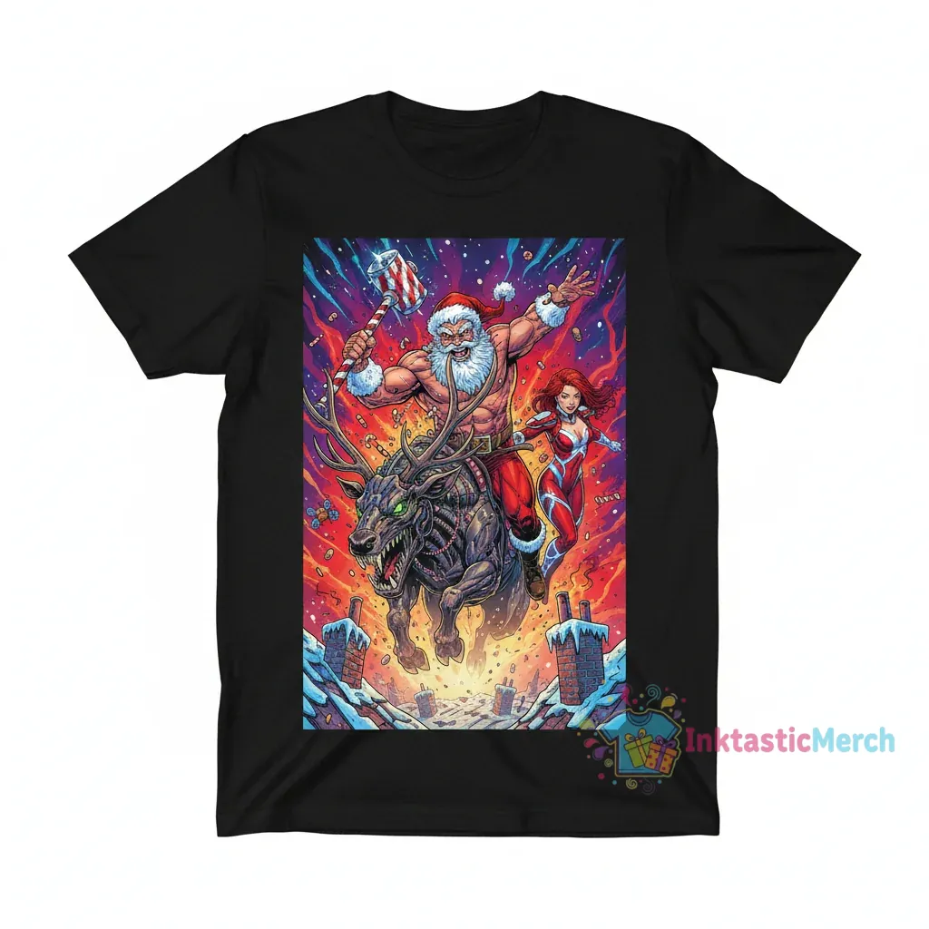 The Super Humman Jess Jeckel ‘Christmas of Carnage’ Santa Claus shirt offers buttery softness and a relaxed silhouette, making it your go-to companion for festive adventures or casual outings. Crafted with exceptionally soft, premium cotton and featuring high-quality, durable print of original artwork, this shirt from inktasticmerch.com is expertly stitched for lasting wear and shape retention.