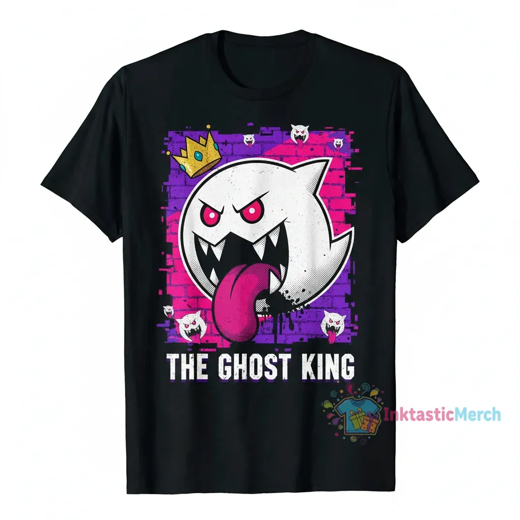 Unleash your inner gamer with the Super Mario Bros. King Boo T-Shirt from InktasticMerch. Crafted for both style and comfort using premium quality fabric, this incredibly soft t-shirt features a durable print of the beloved King Boo character, making it perfect for everyday wear and sparking conversations among fellow Nintendo fans.