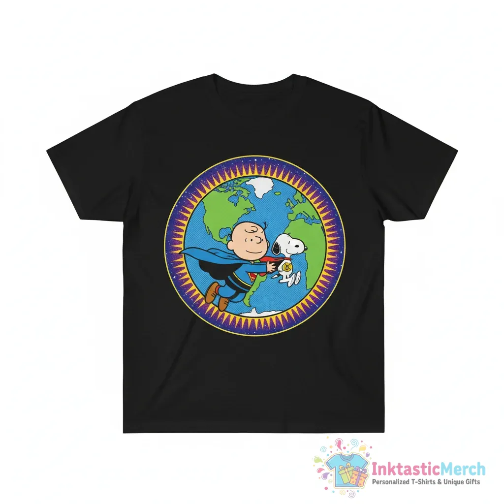 Showcase your love for iconic characters with the Superman and Krypto X Charlie Brown and Snoopy Super Earthrise shirt from InktasticMerch. Crafted for ultimate comfort with ultra-soft fabric and a durable, premium quality material, this tee offers a fun, retro vibe perfect for everyday wear or comic conventions.