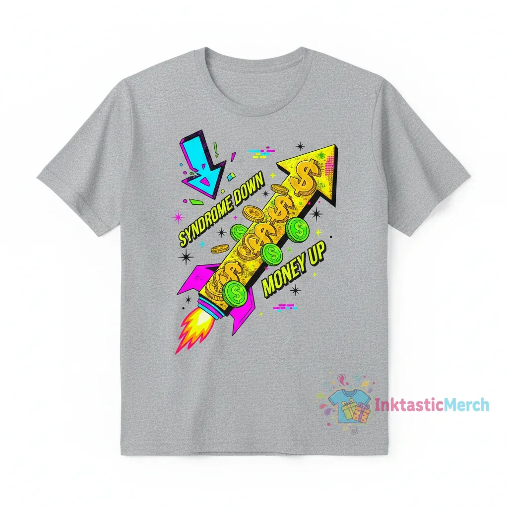 The Syndrome Down Money Up shirt from InktasticMerch celebrates the power of perspective, reminding us that true richness comes from within. Crafted for unparalleled comfort, this tee feels like a second skin, designed to move with you through every adventure, making it a perfect companion for your everyday hustle and moments of relaxation.