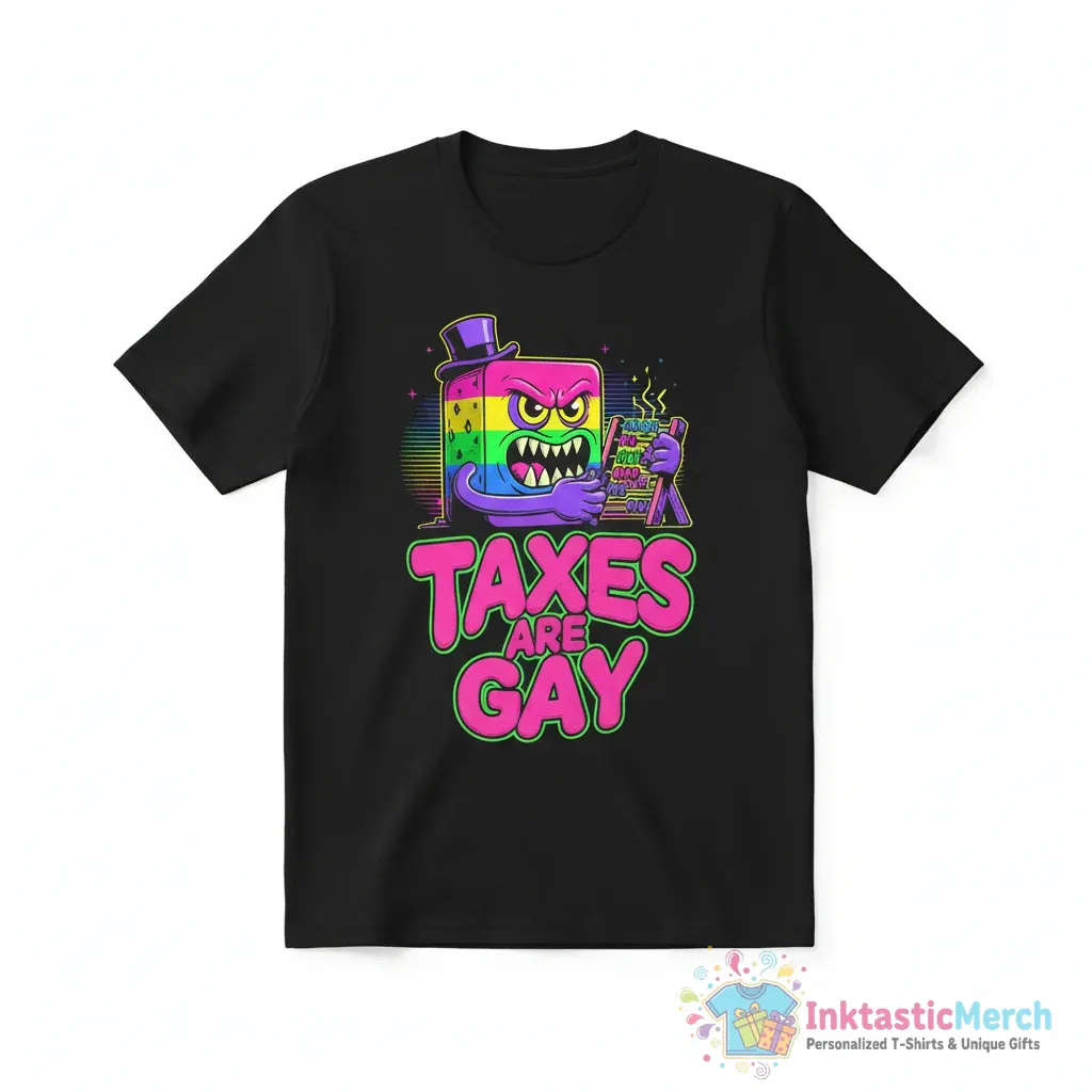 Make a statement with the “Taxes Are Gay” T-shirt from InktasticMerch. Designed for comfort and style, this tee features eye-catching artwork and a perfect blend of soft fabric that feels amazing against your skin, making it your new favorite go-to shirt for everyday wear. Its durable, high-quality construction and classic unisex fit ensure it looks great on everyone.