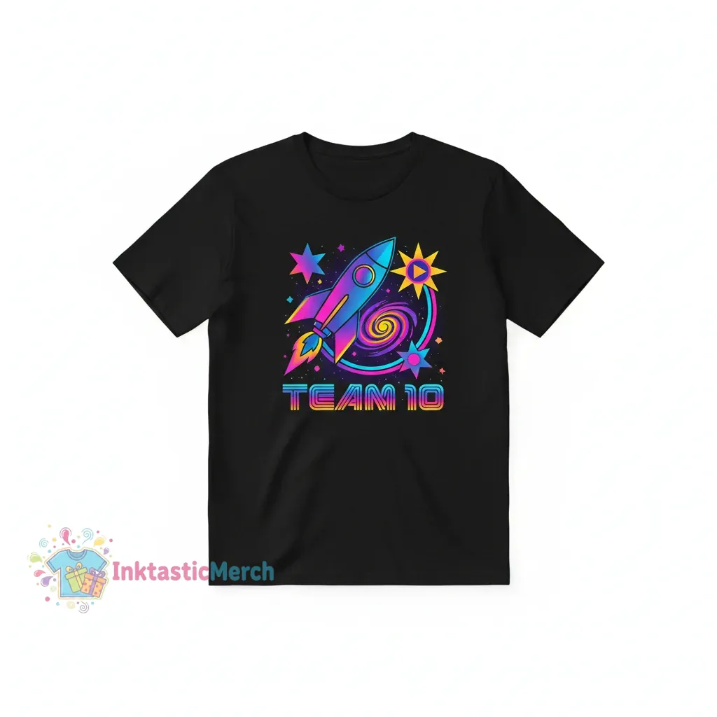 - Classic black t-shirt featuring the distinctive Team 10 Galaxy Logo.
