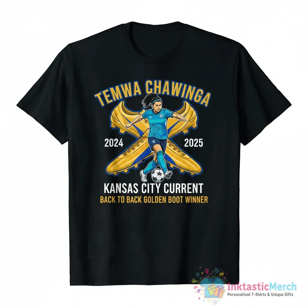 Show your support for soccer superstar Temwa Chawinga with this exclusive Kansas City Current NWSL Golden Boot Winner 2025 shirt! Crafted for ultimate comfort and lasting style, this tee is made from incredibly soft, premium fabric, a testament to the quality you can expect from InktasticMerch. The vibrant design proudly displays Temwa Chawinga’s name and her impressive back-to-back Golden Boot wins, making it a standout piece perfect for game days or casual outings.