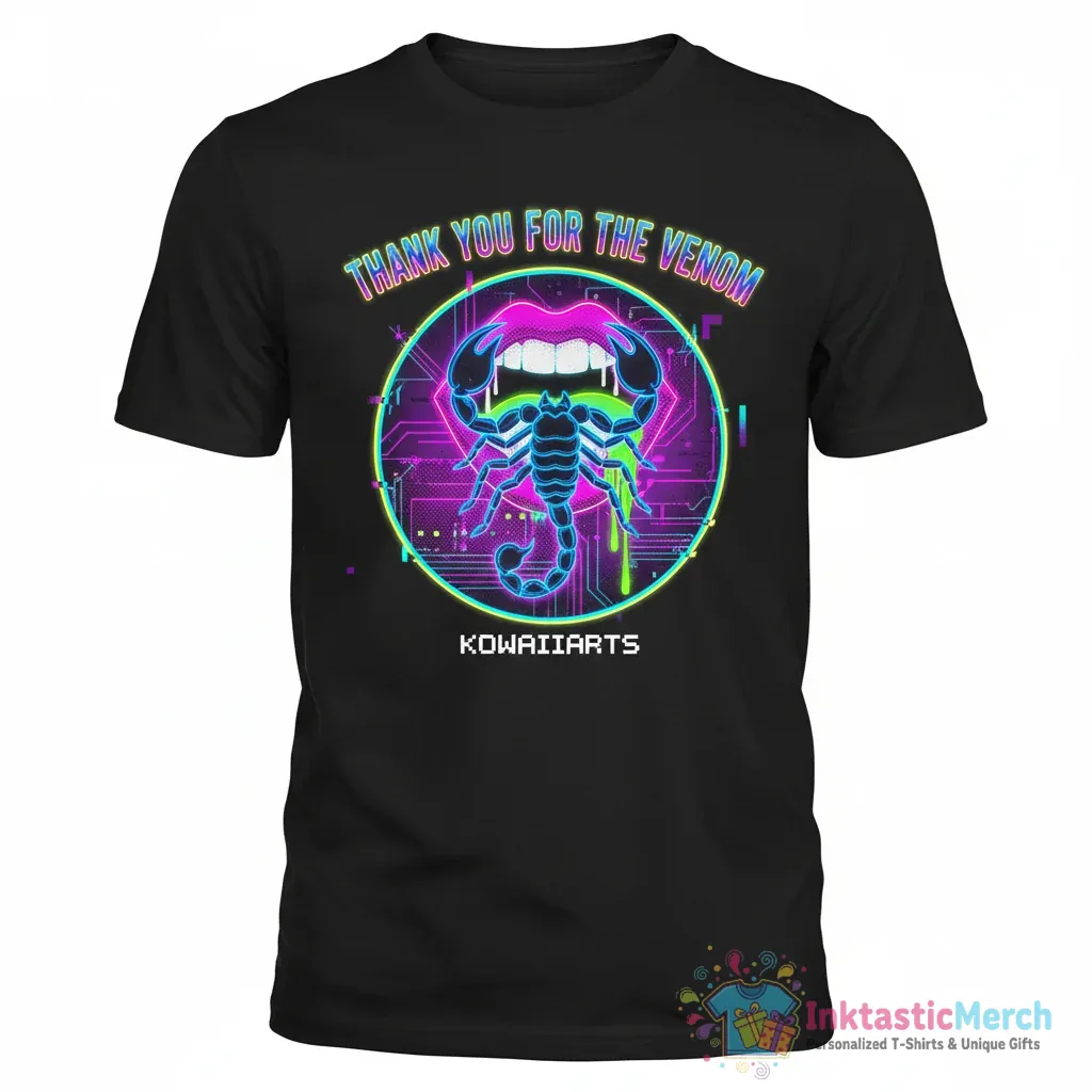 Make a bold statement with the Thank You for the Venom T-shirt. This tee isn’t just clothing; it’s a conversation starter. Featuring a striking design that captures a unique vibe, it’s perfect for anyone who appreciates edgy and expressive art. Crafted from incredibly soft, high-quality fabric, this shirt feels amazing against your skin, making it your go-to choice for everyday wear. Its comfortable, relaxed fit is designed for everyone, ensuring it looks and feels great no matter your style. Embrace your individuality and let your wardrobe do the talking with this standout piece.