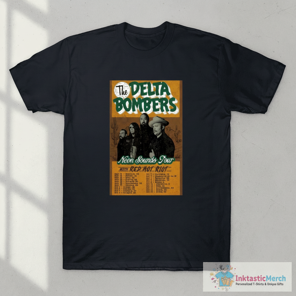 Rock out in style with the official Delta Bombers Neon Sounds Tour 2023 T-shirt! This tee celebrates the electrifying energy of the 2023 tour, featuring unique artwork inspired by the Neon Sounds experience. It’s the perfect way to show your love for the Delta Bombers and their incredible music. Made for comfort and designed for fans, this shirt captures the raw power and unforgettable vibes of the Red Hot Riot tour. Grab yours and keep the music alive!