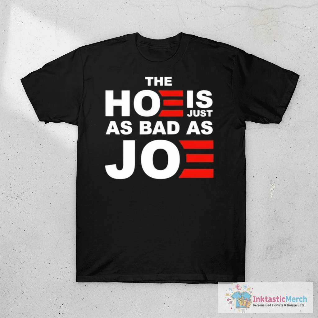 Make a bold statement with the “The Hoe Is Just As Bad As Joe” T-shirt, crafted for comfort and designed to stand out. This tee is printed on high-quality, ultra-soft premium cotton blend fabric, ensuring a comfortable feel for everyday wear and durability that lasts. Express your unique perspective and spark conversations with this witty and impactful graphic tee from inktasticmerch.com.
