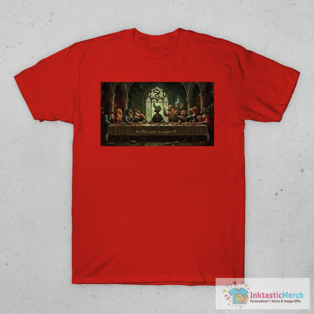 Unleash your inner foodie and pop culture fan with the The Last S-s-s-upper T-Shirt. This unique tee features a hilarious cartoon parody of a famous scene, making it a standout addition to any casual wardrobe. It’s more than just a T-shirt; it’s a conversation starter that shows off your fun side. Crafted for comfort and designed to turn heads, this shirt is perfect for anyone who appreciates a good laugh and a cool design.