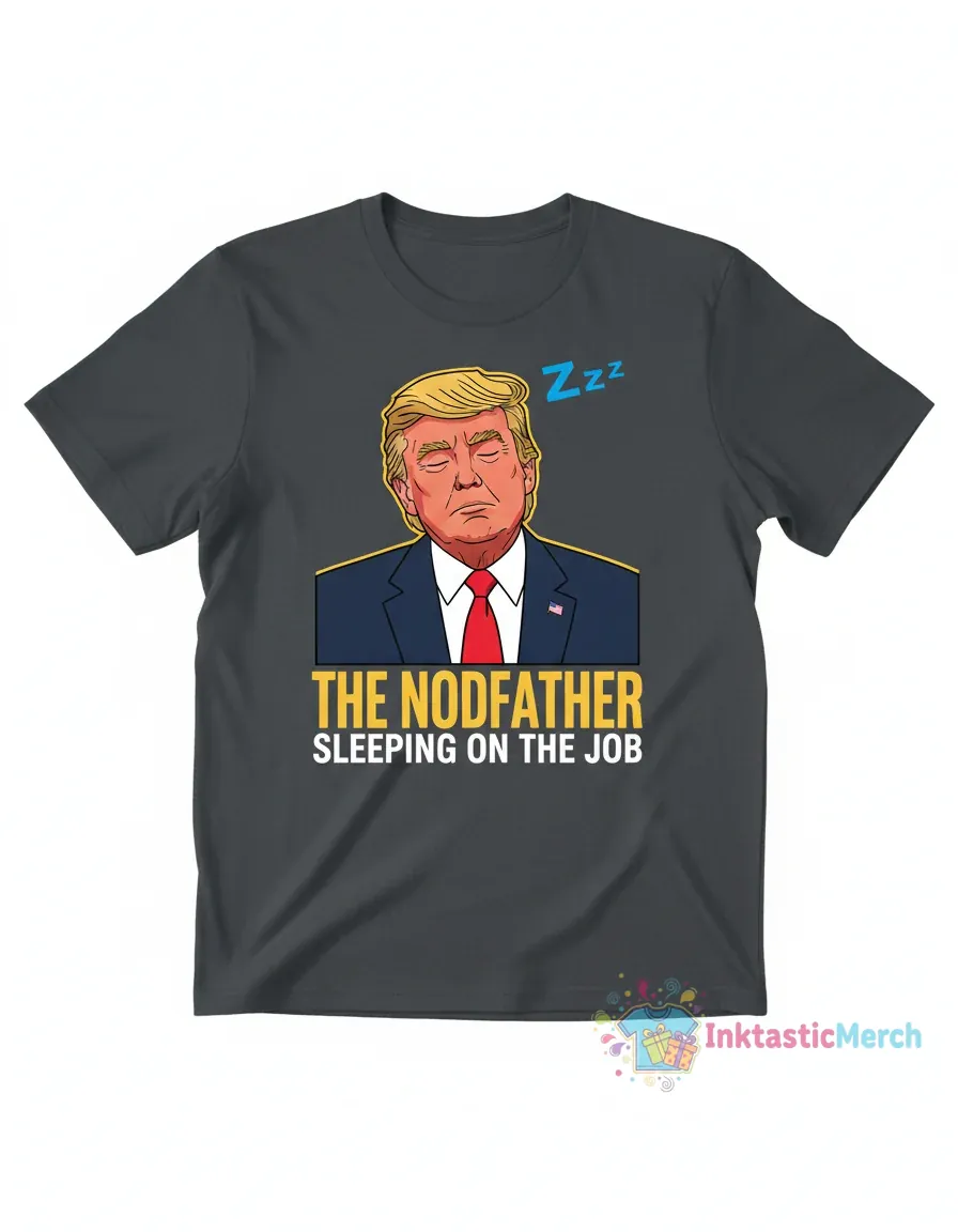 The Nodfather Trump Sleeping shirt is a playful nod to a shared moment, capturing a sense of humorous camaraderie. This design was born from observing those quiet, often relatable, moments that spark a smile. We wanted to translate that lighthearted feeling into a wearable piece of art that brings a touch of levity to your day. It’s about finding joy in the everyday and expressing it with a bit of wit. This isn’t just a graphic tee; it’s a conversation starter, a reminder to embrace the funnier side of life, and a piece that resonates with a particular sense of contemporary humor.