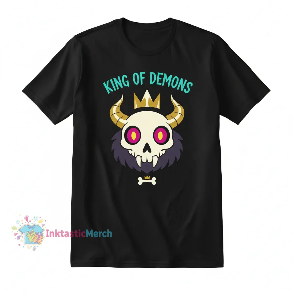 To maintain the quality and longevity of your The Owl House King T-Shirt, machine wash cold with like colors. Tumble dry low or hang dry for best results. Avoid ironing directly on the printed graphic to preserve its vibrancy. This versatile black t-shirt pairs effortlessly with jeans, shorts, or can be layered under a jacket or hoodie. Perfect for casual wear, conventions, or as a statement piece for any fan of The Owl House, it’s an essential addition for showcasing your fandom in comfort and style.