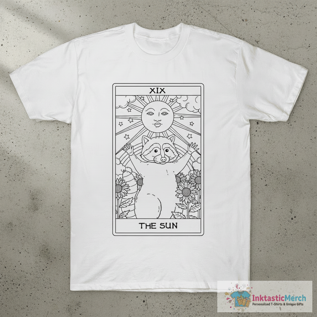 Bring your style to life with the The Sun – Raccoons Tarot T-Shirt today!