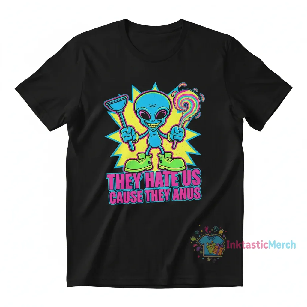Make a bold statement with the “They Hate Us Cause They Anus” tee, crafted with premium, 100% pre-shrunk cotton for lasting comfort and a consistent fit. This durable statement piece from InktasticMerch features vibrant, eco-friendly inks that resist fading, ensuring your unique attitude is always on display. Experience the luxe comfort and style designed to keep you feeling great, wash after wash.