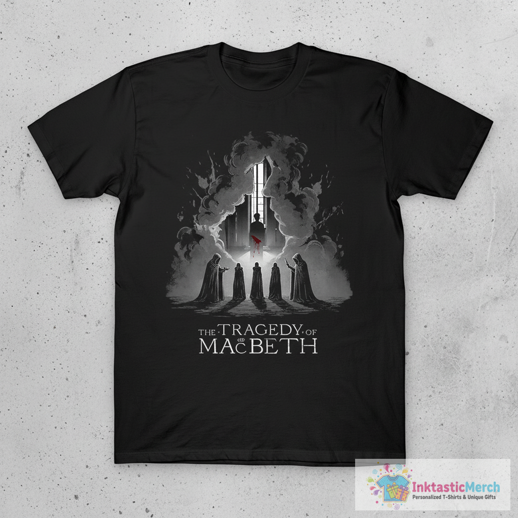 Step into the world of classic literature and drama with The Tragedy of Macbeth Poster T-Shirt. This unique tee captures the essence of one of Shakespeare’s most famous plays. Featuring a striking poster design, it blends culture with style, making it a must-have for literature enthusiasts.