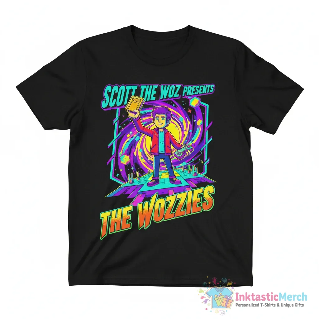 Show off your love for Wozzies and Scott the Woz with this awesome Wozzies Scott The Woz Presents Shirt from InktasticMerch. Crafted from premium, breathable fabric, this tee offers an ultra-soft feel and a durable print designed for long-lasting wear, making it perfect for expressing your fandom in style.