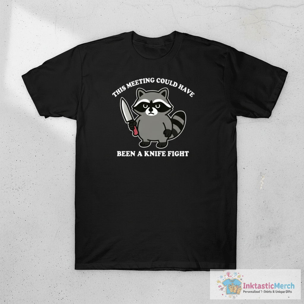 Experience ultimate comfort and showcase your unique sense of humor with the “This Meeting Could Have Been A Knife Fight Funny Raccoon” T-Shirt from InktasticMerch. Crafted with incredibly soft, premium quality fabric and featuring a durable, fade-resistant print, this tee is designed for both exceptional comfort and lasting style. Its relatable design and flattering unisex fit make it the perfect addition to any casual wardrobe, offering a witty way to express your personality.