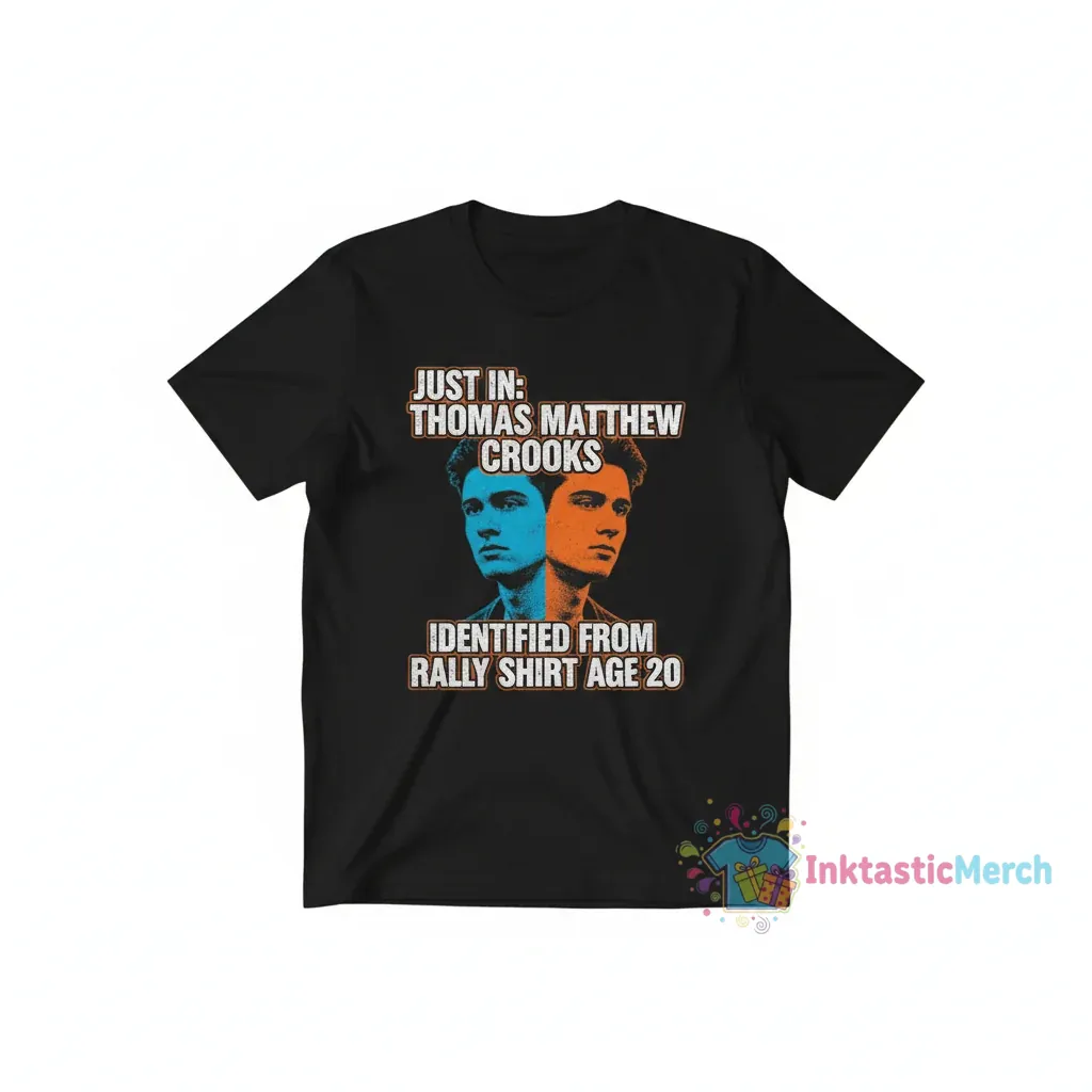 Channeling a powerful narrative, the Thomas Mathew Crooks ’20 Trump Rally Shirt from InktasticMerch embodies a bold contemporary aesthetic, designed for those who understand the power of iconic pieces. Crafted from premium, high-end fabric, this shirt boasts an unbelievably soft feel against your skin, offering a luxurious touch without compromising its street-ready vibe.