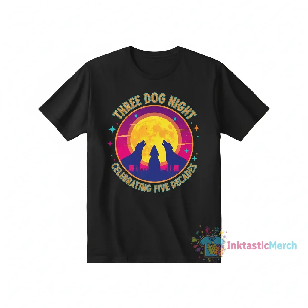 To maintain the vibrant print and integrity of your Three Dog Night band t-shirt, machine wash cold, inside-out, with like colors. Tumble dry low or hang dry for best results. Avoid ironing directly on the graphic. This versatile t-shirt pairs effortlessly with jeans, shorts, or layering under a jacket. It’s ideal for casual outings, music festivals, or as a comfortable staple in your everyday wardrobe, allowing you to express your musical passion with ease.