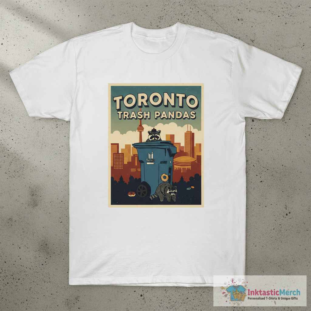 Show your local pride and sense of humor with the Toronto Trash Pandas T-Shirt, a unique and playful tee inspired by the resourceful raccoons of Toronto. Crafted for comfort and style with an ultra-soft fabric and a high-quality, vibrant print that lasts, this shirt is designed to be a favorite for anyone appreciating unique, city-inspired apparel from inktasticmerch.com.